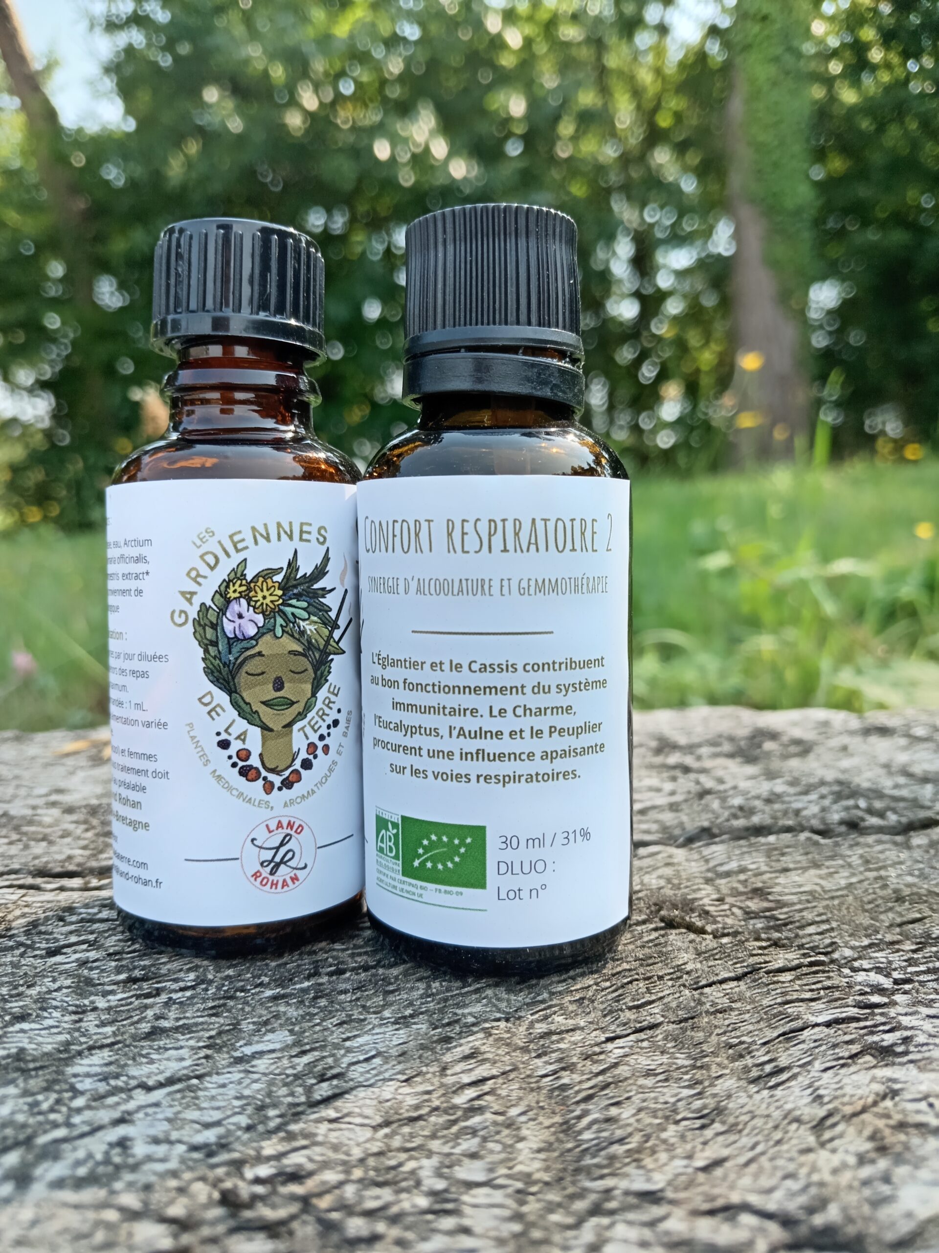 L’Eglantier et le Cassis contribuent au bon fonctionnement du système immunitaire. Le Charme, l’Eucalyptus, l’Aulne et le Peuplier procurent une influence apaisante sur les voies respiratoires.